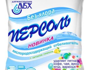 - «Persol". Bu oksijen bazlı leke çıkarıcı, malzemenin rengini veya dokusunu değiştirmeden küf lekelerinin çıkarılmasına yardımcı olacaktır. Temizlik için, bir bulamaç oluşana kadar ürünü suyla seyreltmeniz gerekecektir. Daha sonra kirli yüzeye uygulayın, 20-30 dakika bekleyin. Sonunda, bebek arabası kılıfını normal deterjanla yıkayın ve iyice durulayın.