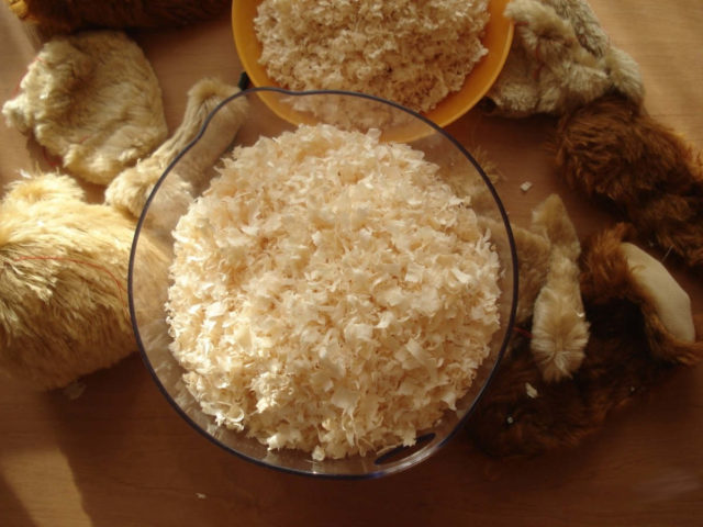 Uzmanlar, iğne yapraklı olmayan ağaçların ince kuru talaşının kullanılmasını önermektedir. Bir avuç alıp kirli alanları onlarla silmeniz veya ürünün tamamına serpip 2-3 saat beklemeniz gerekir. Sonra sallayın, metal bir tarakla saça doğru tarayın ve tekrar sallayın.