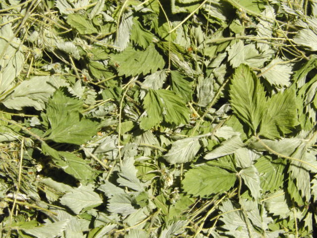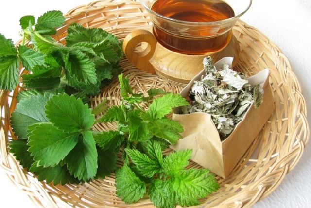 - büyük bir kaşık kurutulmuş yaprak 250 ml kaynar su ile buharda pişirilir;