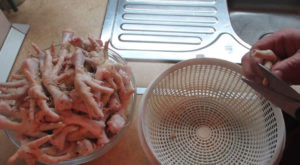 - Pençeleri (pişirmeye uygun değillerdir) bir bıçak veya balta ile çıkarın.