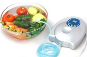Ürünler için ozonlayıcının zararları ve faydaları birçok üreticinin reklamlarında öngörülmüştür. Tedavi su cihazı ile yapılır. Esasen bakteriler yüzeysel olarak yok edilir. Yiyecekler yıkanır, temiz suya konur ve ozonlayıcı çalıştırılır.