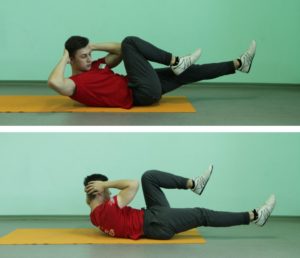 - Ellerinizi başınızın arkasına koyun, boynunuzu gevşetin. Bacaklarınızı kaldırın, kalçalar kesinlikle yere dik konumda olmalıdır.