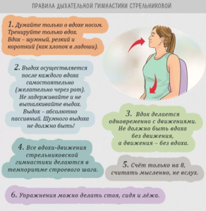 Ефект от гимнастиката ще има, когато се изпълняват дихателните упражнения на Стрелникова, ръководени от общите правила.