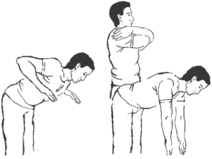 - "Помпа"... Изправяйки гърба, спуснете ръцете си, сложете краката си. Издишайте, извийте гърба нагоре, наведете се напред. При вдишване те бавно заемат първоначалното си положение.