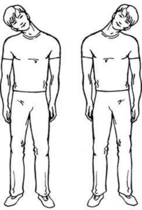 Стоейки, обърнете главата им надясно, дълбок дъх... Издишвайки, обърнете се наляво. След това се връщат в центъра, повтарят в обратен ред. Не се препоръчва да се прави в различен ред.