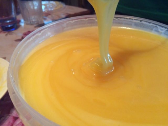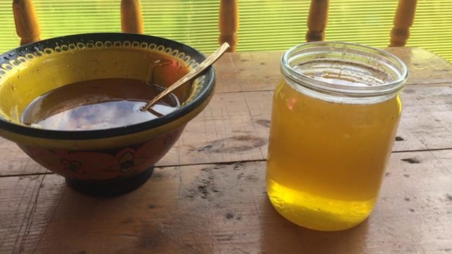 - две големи супени лъжици от пчелния продукт леко се нагряват с пара, така че продуктът да придобие течна консистенция;