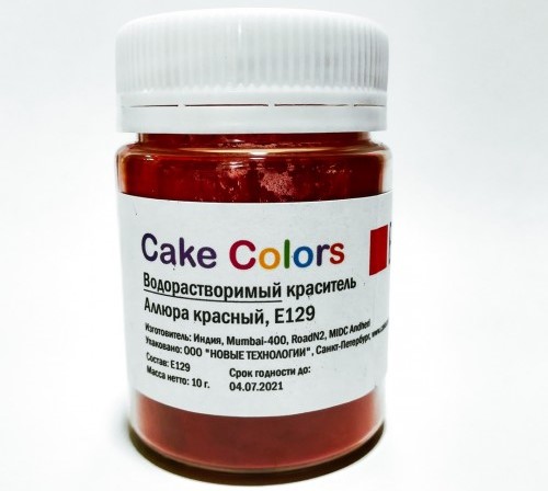 Хранителната добавка E129 е напълно синтетична. Той е направен от петролни продукти, въпреки че преди това е получен от въглищен катран. Багрилото се разтваря добре в течности.