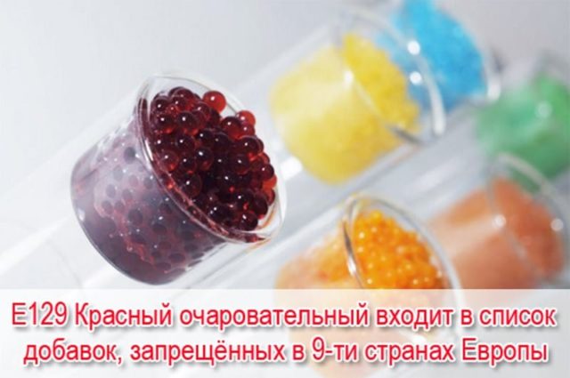 Хранителната добавка E129 се счита за едно от най-често срещаните багрила. Той се добавя при производството на сладкиши, сода и удобни храни - тоест в бързо хранене. Някои твърдят, че това вещество е безопасно за организма. Но ако се задълбочите в произхода на компонента, тогава възниква въпросът - може ли химикалът да бъде полезен. Може спокойно да се каже, че е вредно за бъдещото поколение. Следователно родителите трябва да предпазват тялото на детето от неблагоприятни ефекти и да приготвят храна сами.