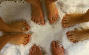 - редуващо се спускане на краката в леген със студена и ледена вода.